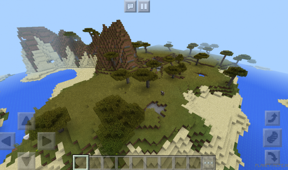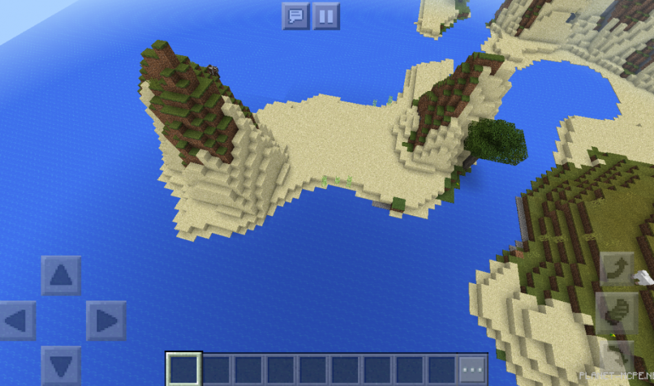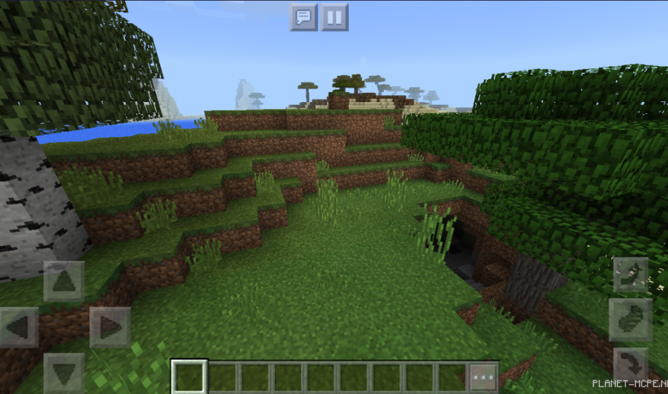 Additionally, there is a small cave located on one of the islands within Minecraft Pocket Edition. You can also spot another island across the water on the MCPE platform.