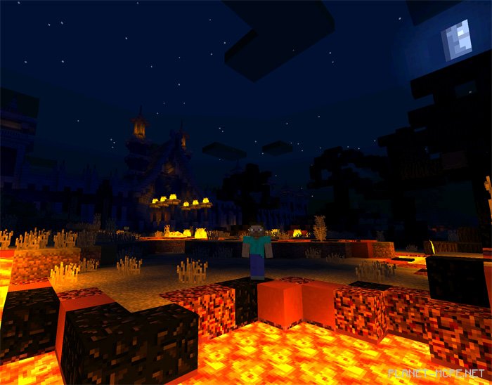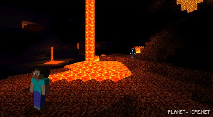 EVO Shaders transforms everything we’ve previously experienced in Minecraft Pocket Edition. No matter the landscape before you, it will appear ten times more stunning. The lava in the Nether looks absolutely incredible due to the bright glow of the molten rock, which smoothly spreads across nearby blocks.