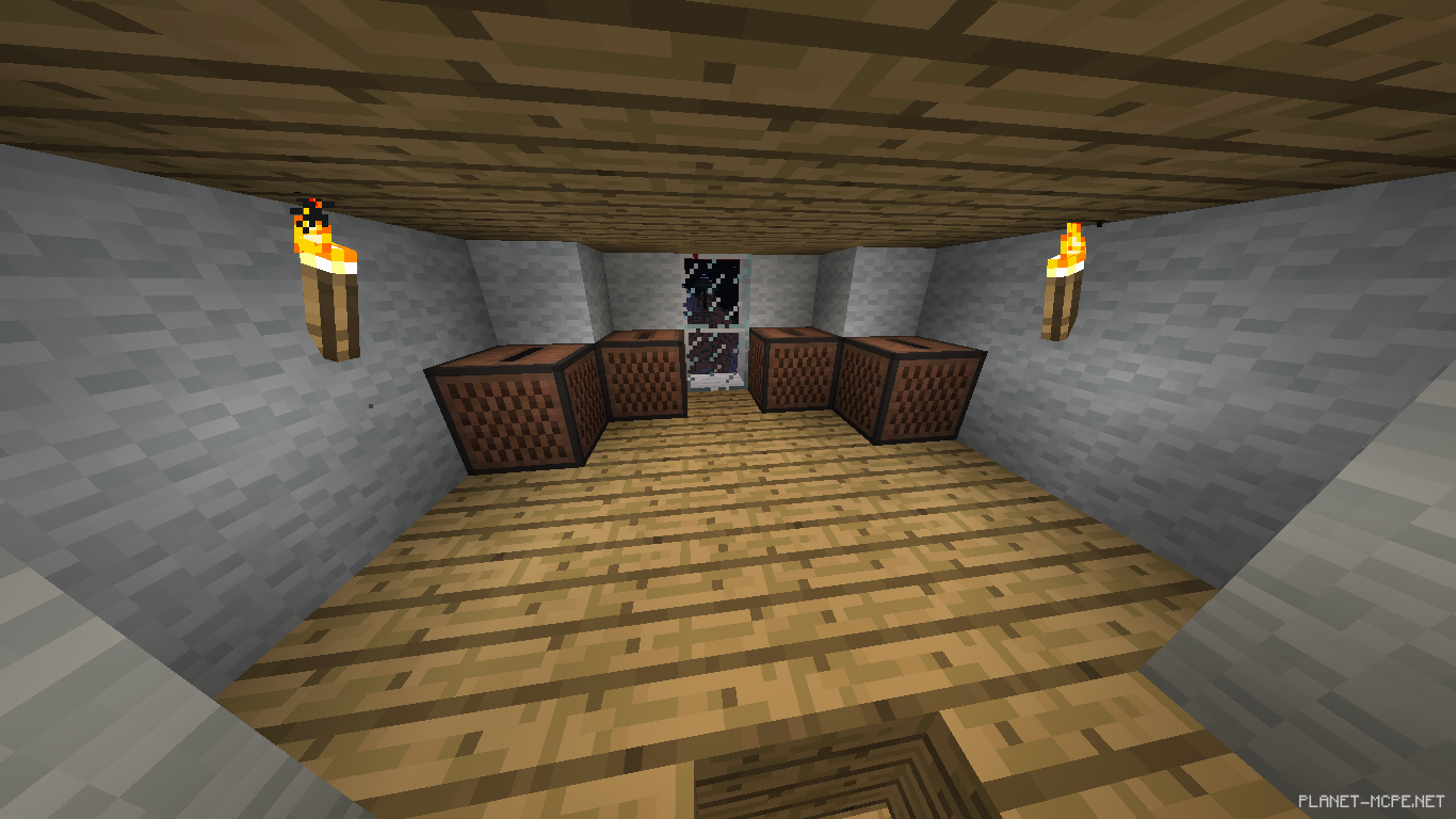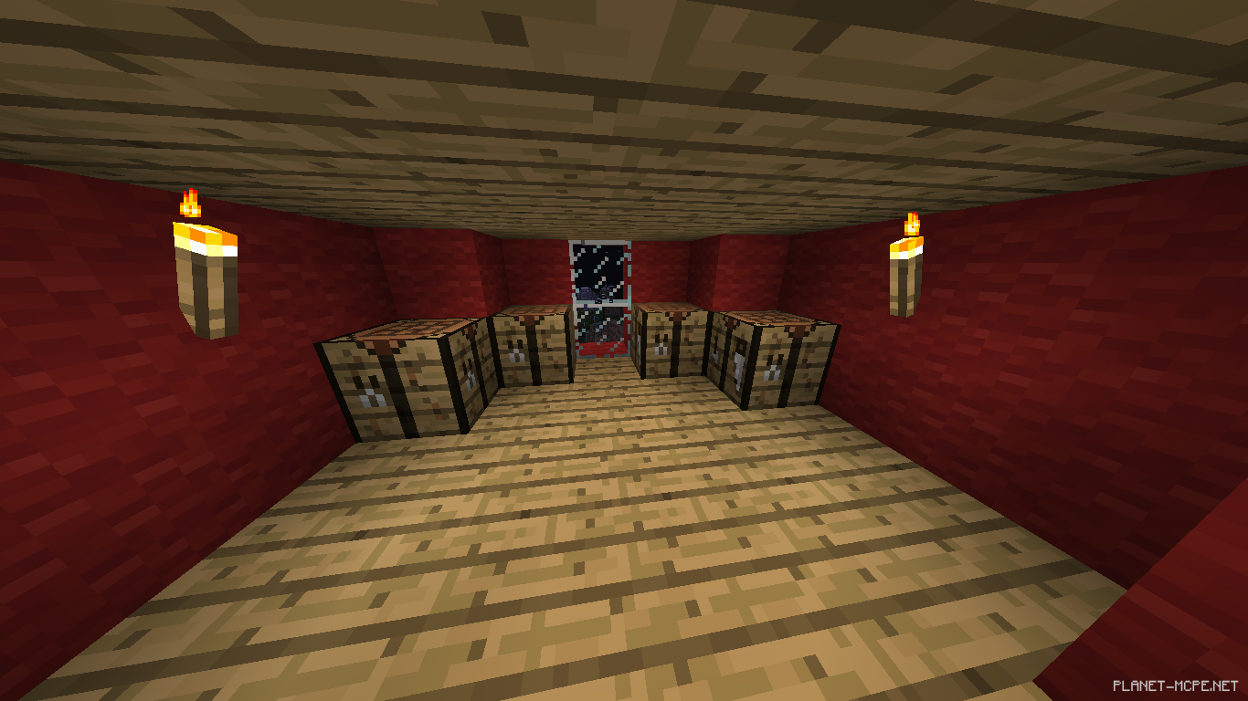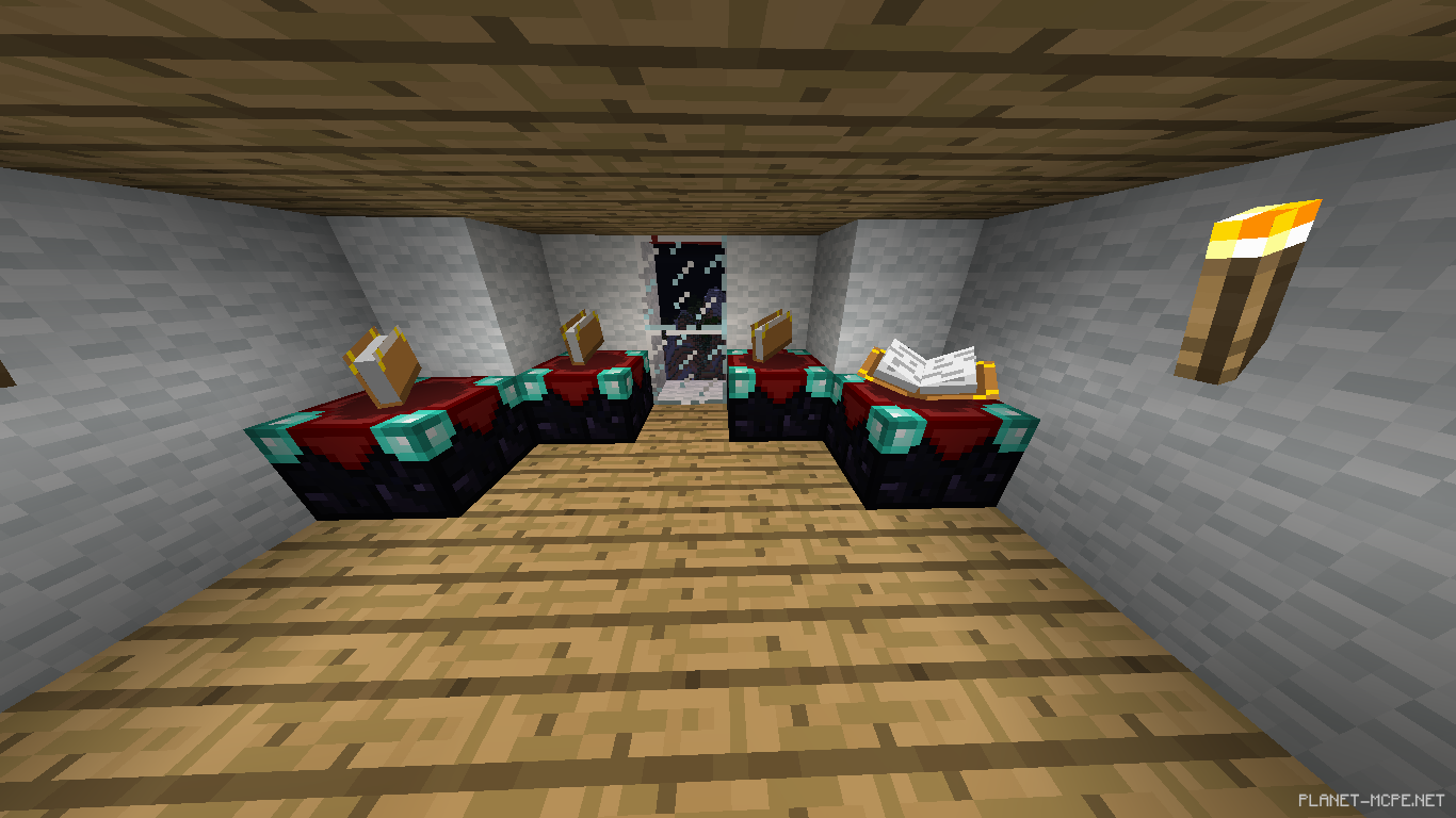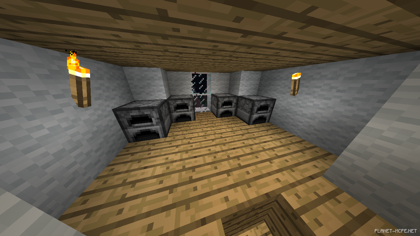 На последнем ставим кровать, по бокам забор, а на забор факелы.