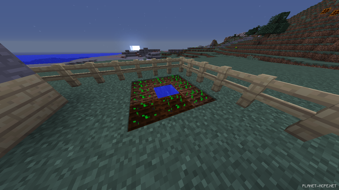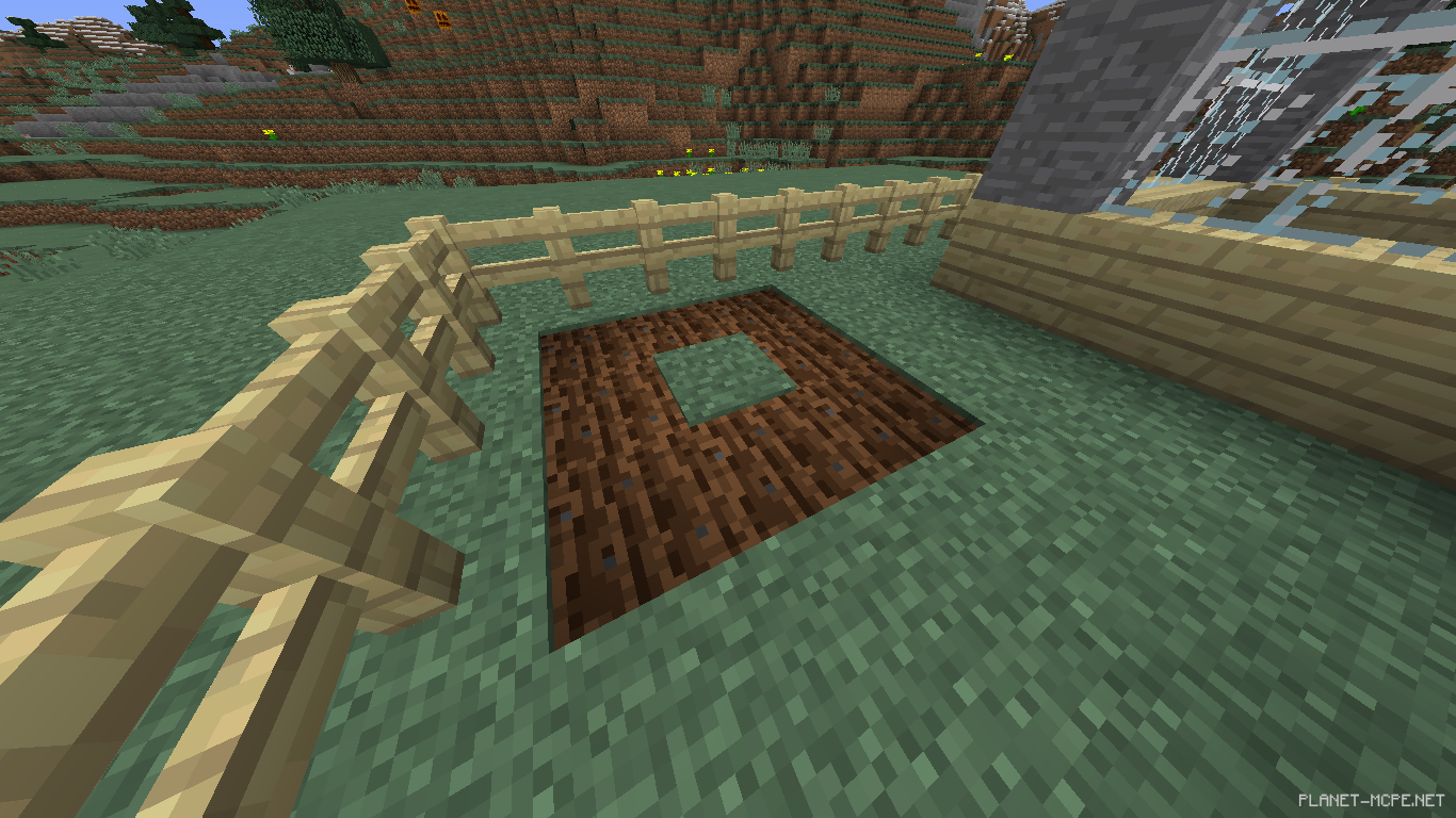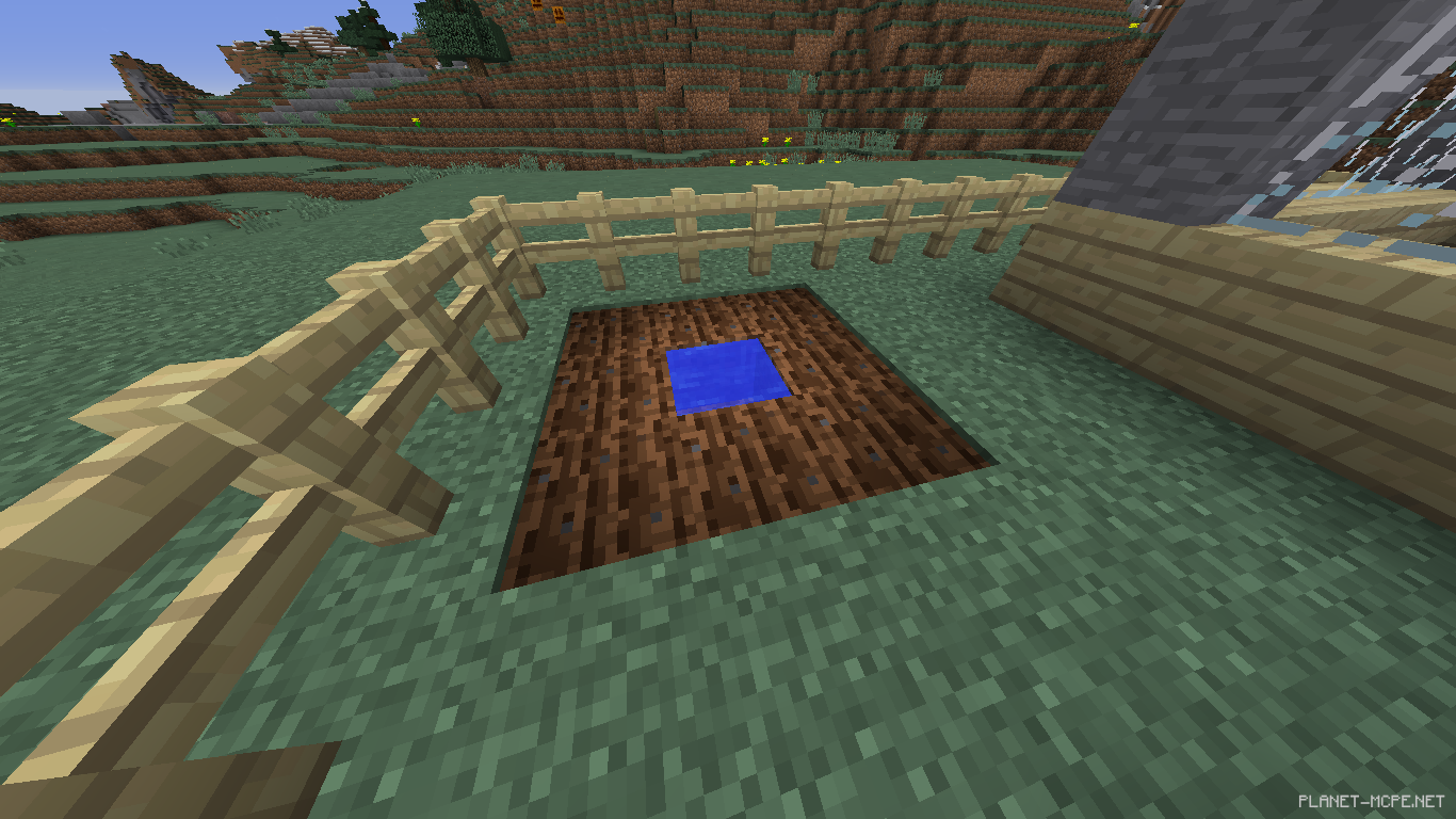 Берем мотыгу и ПКМ ударяем по земле,а в середине нальем воды.