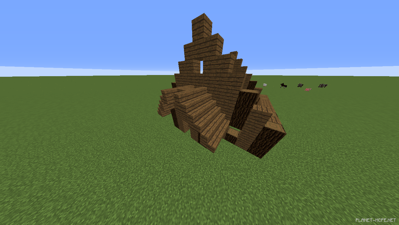 Теперь строим крышу входа и задней части дома в Minecraft Pocket Edition