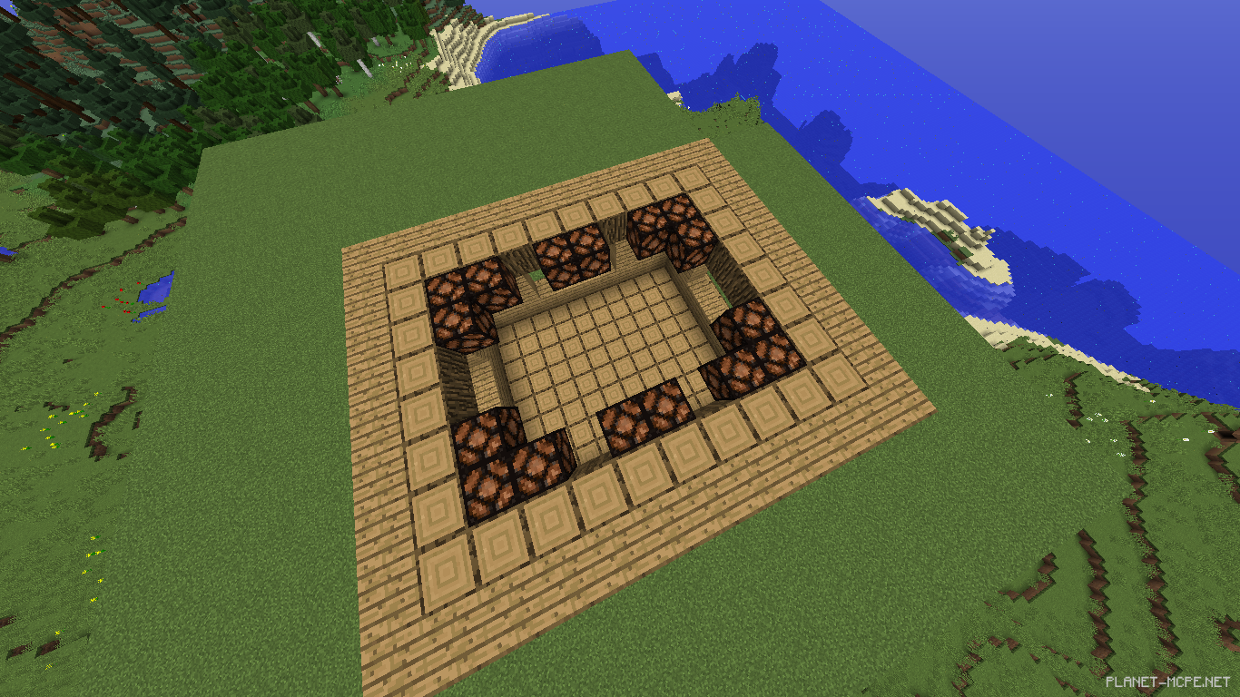 Начнем.Сперва сделаем основу и пол дома. Размер: Длина 14, а ширина 12 блоков Майнкрафт ПЕ.