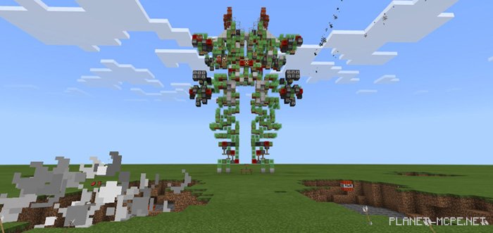 Колосс — это огромная, чудовищная машина, вооружённая взрывчаткой, ракетами и диспенсерами и вдохновлена она мощным созданием из слизи, выполненное by Cubehamster’s. Вы найдёте её на карте «Attack Robot – Colossus» для Майнкрафт Покет Эдишн. Это действительно убийственная машина, которая при активации может уничтожить огромную территорию вокруг себя. Я думаю, будет справедливо сказать, что Вам лучше никогда не сталкиваться с одной из таких машин в настоящей битве в мире МКПЕ.