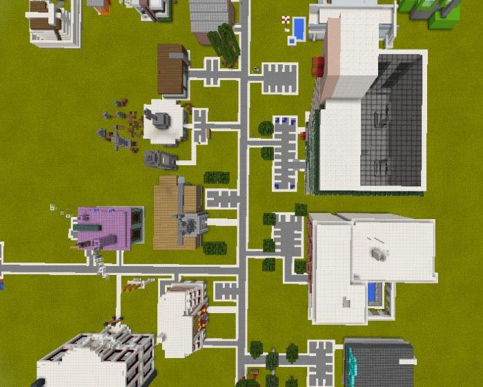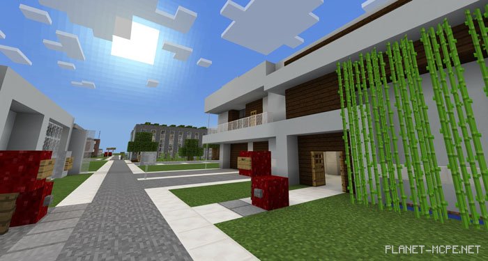 «Elmsville: A Modern City (Эльмсвиль: Современный город)» — это небольшой современный город, который в основном предназначен для ролевых игр в Minecraft PE. Всё интерактивно, от душевых кабин (которые на самом деле работают) до дверей гаража и магазинов. На карте было реализовано множество командных блоков и редстоуна, чтобы сделать опыт игры просто невероятным. Карта идеально подходит для ролевой игры! Вот некоторые из функций, включенных в представленную карту: