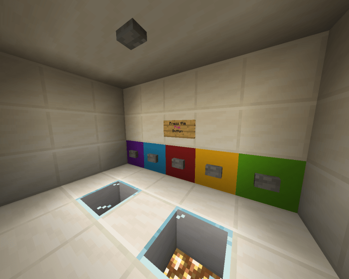Карта-головоломка «Follow the Instructions (Следуйте инструкциям)» состоит из 10 уровней, сложность которых по мере прохождения будет возрастать. Большая часть головоломок Minecraft Bedrock имеет очень сложные задания, поэтому автор решил взять все в свои руки и разработать эту карту. Основная часть уровней базируется на нажатии кнопки правильного цвета и расположения. При выборе неверного варианта ответа, Вам нужно будет перезапускать игру, поэтому будьте внимательнее.