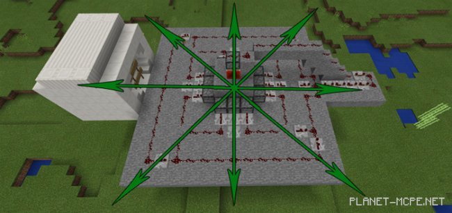 Чтобы выстрелить в Вашего врага в мире Майнкрафт Покет Эдишн, используйте одну из 8 кнопок, активирующих механизм.