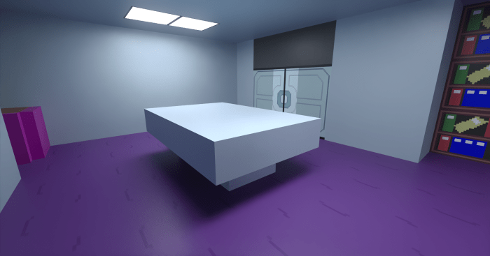 Специально для этой карты в Майнкрафте были созданы пользовательские текстуры. Они создают именно ту атмосферу игры, которая соответствует офисным помещениям, исследовательским лабораториям и загадочному расследованию убийства. В комнатах Вы найдете функциональные вентиляционные отверстия, работа которых основана на командных блоках. Используя их, Вы сможете телепортироваться в другое место игровой зоны.