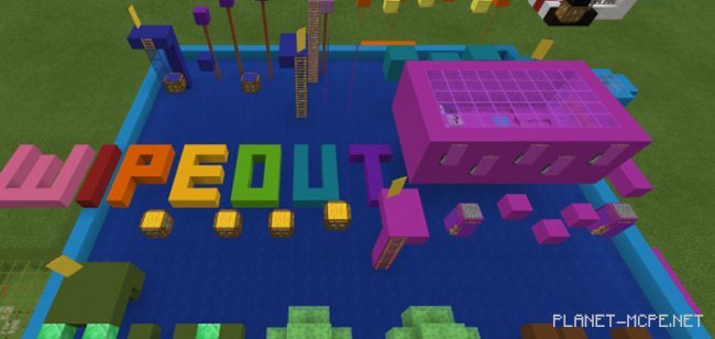 «Crazy Wipeout (Сумасшедший вынос)» — это карта, основанная на некогда популярном игровом шоу под названием Wipeout. Карта представляет собой курс препятствий. Есть также некоторые автоматизированные механизмы, которые контролируются при помощи редстоуна Minecraft PE. Вы можете играть в одиночку или с друзьями в многопользовательской игре!