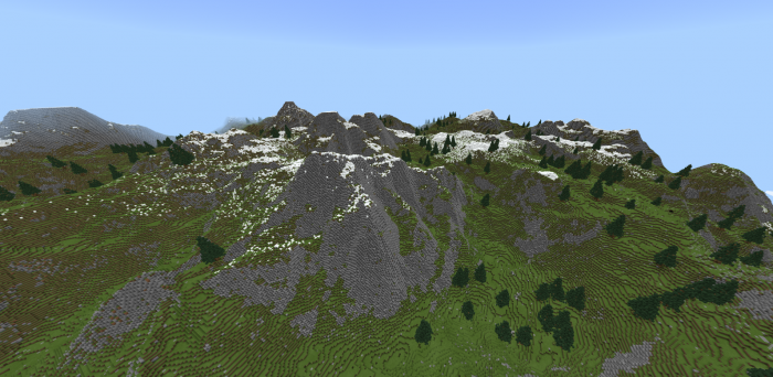 Вся карта Горный остров (Mountain Island) представляет собой неприветливую пользовательскую местность в Minecraft Pocket Edition. Карта состоит из редких заснеженных вершин и не особо плотного леса в Майнкрафте. Автор позаботился о наличии пещер в своем мире, а вот других структур тут нет. Так что можете запустить ее даже в творческом режиме и построить все в MCBE самостоятельно. Размер карты 1500х1500 блоков – хватит на любые «нужды». Приятной игры!