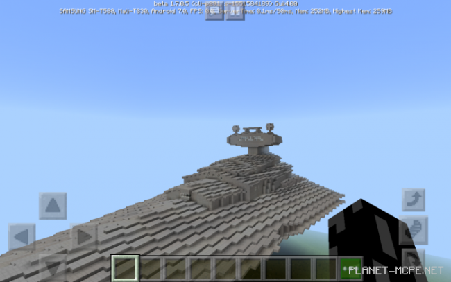 Если Вы большой фанат Звёздных войн, то карта «Imperial Class Star Destroyer 2004 (Имперский Звёздный Разрушитель)» Вас впечатлит! Имперский звёздный разрушитель с полным интерьером, редстоуном и работающими турболазерами в Minecraft Bedrock! Обратите внимание, что он представлен в масштабе 1 к 10.