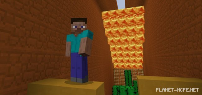 На паркур-карте «Lava Runner» Вы должны будете показать все Ваши беговые умения в Minecraft Pocket Edition. До того, как Вы начнете бежать, у Вас будет небольшая фора, пока лава не начнет стекать с потолка. Ваша цель на данной карте для МКПЕ — перебежать от одного блока к другому, пройдя через все препятствия. Добравшись до конца трассы Вы откроете доступ к следующему уровню карты «Lava Runner» для Майнкрафт ПЕ. Всегда, находясь в движении, помните, что за Вами течет огромный поток лавы, и стоит этой лаве Вас догнать, Ваша жизнь в MCPE закончена.