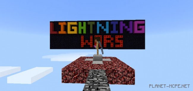 «Lightning Wars (Молниеносные войны)» — новая игровой режим для мини-игр в Minecraft PE, созданный McpeTPX. Это означает, что целью двух игроков станет задача обеспечить свою команду различным молниеносным оружием, которое они должны использовать, чтобы уничтожить команду соперников. Вы получите 5 минут, чтобы построить базу, и за это время Вам будет дан доступ к творческому инвентарю.