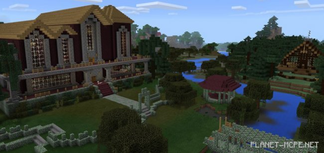 Представляем Вам действительно классный мир на карте «Mansion Village (Деревня из особняков)», который можно было бы использовать в качестве Вашего следующего мира выживания Minecraft Pocket Edition. Он включает в себя несколько больших особняков и несколько коттеджей.Все они расположены близко друг к другу, поэтому их довольно легко найти. Во всех домах есть мебель и декор. Единственное, что Вам нужно сделать, это найти дом по своему вкусу, а затем зайти! Небольшим недостатком является размер файла (219 МБ).