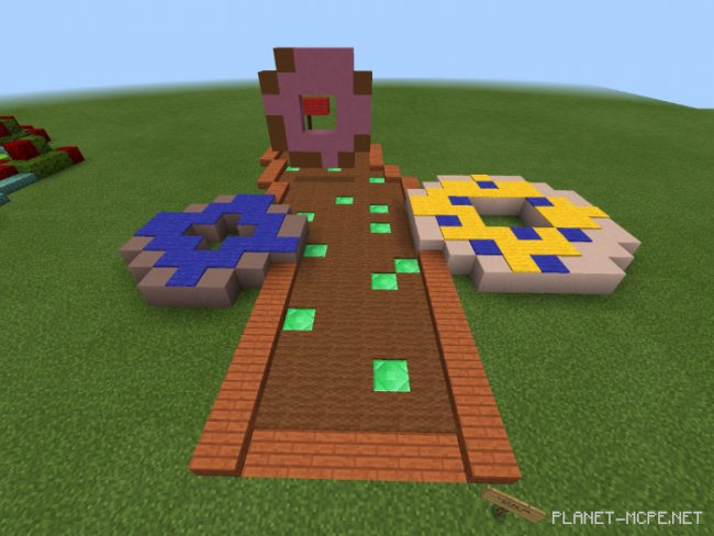Вам нравится мини-гольф? Представляем Вам отличный шанс для игры на карте «Matt’s Minigolf: Food Edition (Мини-гольф Мэтта: Издание Еды)» — один из выпусков в серии Matt’s Minigolf, в которых представлен мини-гольф в Minecraft Bedrock. На этот раз Вас ждёт 10 различных уровней, каждый из которых основан на каком-либо продукте питания. Пончики, кусочки пиццы, тако — здесь Вы найдёте всё. Цель довольно проста. Бросьте мяч на пол и он будет скользить (благодаря льду, который находится под ковром). Попадите мячом в лунку, чтобы забить. Лучше всего играть с другими игроками Майнкрафт.