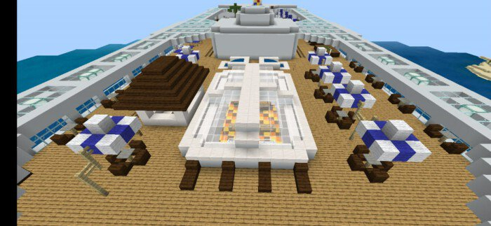 Карта «MS Castrøma» представляет собой огромный круизный лайнер мира Minecraft, состоящий из 5 палуб и 55 номеров. Там есть террасы, джакузи и бассейн под открытым небом, казино, кафе, спа-салон и даже небольшая больница.