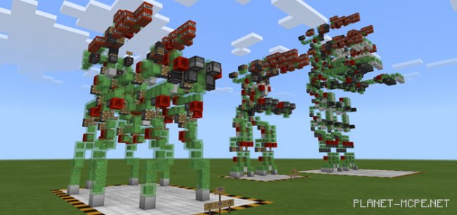 На этой карте есть несколько роботов, которые используют блоки красного камня и слизневые поршни МКПЕ, чтобы обеспечить функциональность, необходимую для ходячих роботов. Они не ограничиваются ходьбой и так же могут управлять оружием, которое позволяет им стрелять TNT-блоками в своих врагов. Всего существует шесть разных роботов, и один из них основан на Mech Master Nine Million из Minecraft Story Mode.