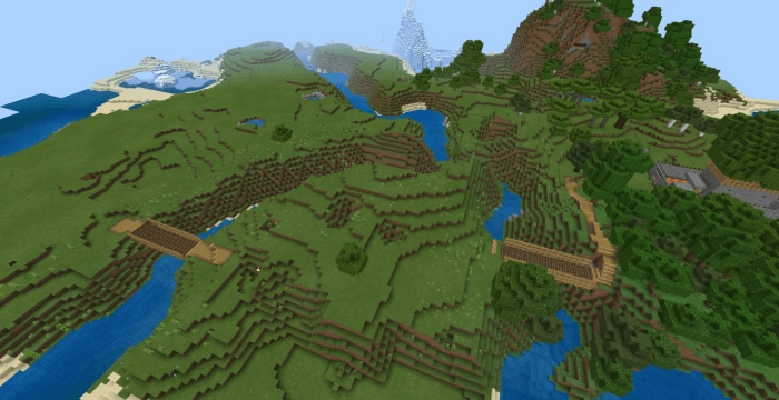 Красивый дом с замечательной сторожевой башней. Если неожиданно появятся разорители или приблизятся монстры Minecraft, Вы можете воспользоваться кнопкой безопасного режима. Рядом с основной базой находится одна из заброшенных шахт, добраться до нее можно по железной дороге из красного камня.