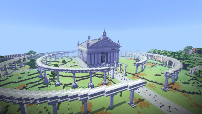 Помимо основного здания в Minecraft построены протяжные цепи колонн, окружающие его. Это придает гробнице еще большее величие.