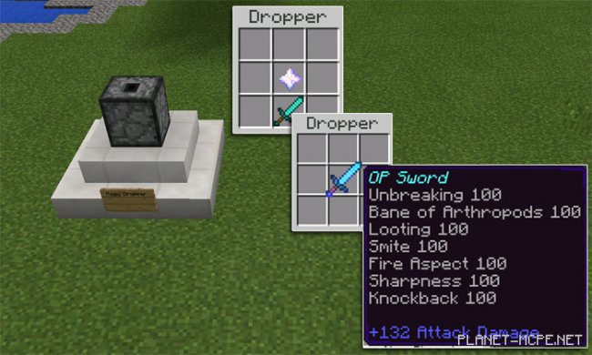 Вы считаете, что в приключениях в мире Minecraft PE Вам не хватает чего-то необычного? Тогда мы рады Вам представить карту «Overpowered Tools With Commands» для Minecraft Pocket Edition, которая позволит Вам зачаровать любой Ваш инструмент на очень мощные чары! На карте для МКПЕ Вы сможете найти специальное устройство, которое с помощью редстоуна и командных блоков позволит Вам обрести небывалую мощь! Для зачаровывания предмета Вам просто нужно положить нужный Вам инструмент и «специальный ингредиент» (об этом ниже) в выбрасыватель! Это очень полезное устройство, которое позволит Вам создать что-то новое и необычное в мире MCPE.