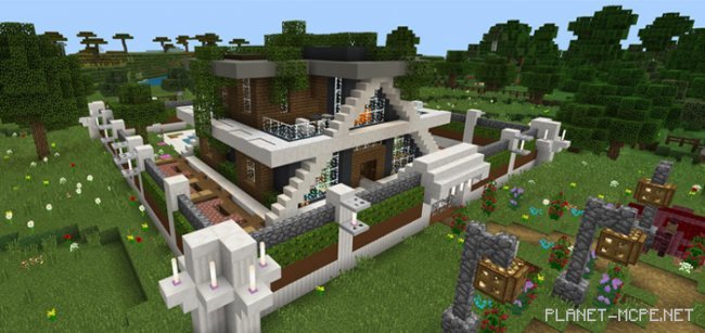 Любите творения из редстоуна и командные блоки? А ведь ещё лучше, если они расположены в Вашем доме и помогают Вам в выживании и творчестве. Карта «RS Smart Modern House Super Ultra (Современный умный дом)» для Майнкрафт Покет Эдишн имеет относительно небольшой дом , но с большим количеством творений для демонстрации. Здесь Вы найдёте более 60 произведений из редстоуна, которые в сумме используют около 500 командных блоков. Это далеко не Ваш типичный дом, но это, скорее всего, лучший и самый оптимизированный дом, который Вы можете использовать как для выживания в Minecraft PE, так и для творческого режима.