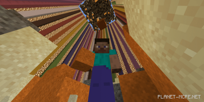 На карте «SAND AND GRAVEL FREE FALL (Песок и гравий свободного падения)» в Майнкрафт Бедрок вместо обычного дождя с капельками воды идет дождь из блоков песка, гравия, наковальни и красного песка. В отличие от обычного, этот дождь представляет серьезную опасность жизни. Суть игры заключается в том, чтобы избежать попадания блоков на голову своего персонажа.