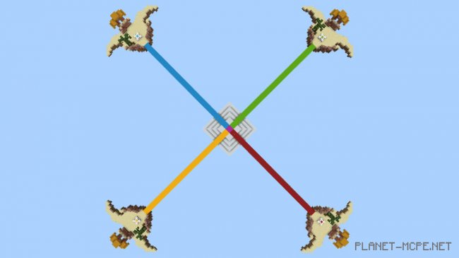Играйте с двумя и более игроками на карте «SG Color Fighters (Цветные бойцы)» для Майнкрафт. Сражайтесь друг с другом и помните, что выбивание игроков в пустоту возродит их, поэтому обязательно убейте их, чтобы ликвидировать! Если вы попадете на вражеский остров в Minecraft Bedrock, встаньте на подиум, чтобы убить всех членов этой команды. Побеждает оставшаяся в живых команда. Удачи!