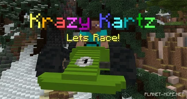 «SG Krazy Kartz (Сумасшедший картинг)» — это карта с гоночной игрой на картингах! Трек длинной 3000 блоков займёт у Вас около 3-5 приятнейших минут игры в Minecraft PE. Вы поедете на картинге тогда, когда Вы его разместите, затем покрасите и сядете в него.