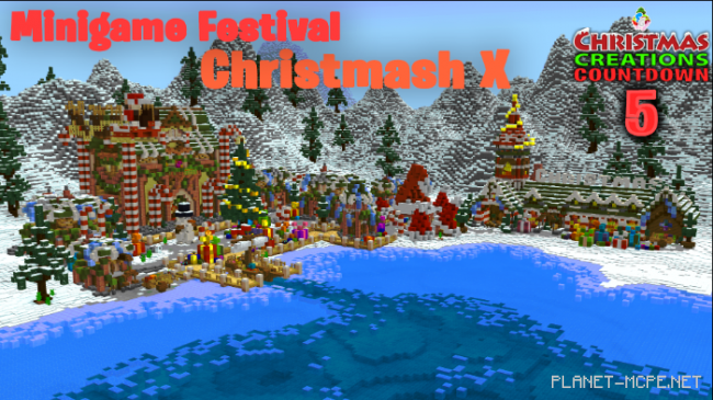 Представляем Вашему вниманию пятый выпуск популярной серии Фестиваля мини-игр в Minecraft. Карта «SG MF: Christmash X (Рождество Икс)» содержит три различные мини-игры, такие как «Каждый эльф за себя», «Подготовка к Настоящему» и «Объединение!». Лучше всего, если Вы найдёте друга (или нескольких), с которыми сможете поиграть, так как игры рассчитаны на многопользовательскую игру в Майнкрафт Бедрок. Приготовьтесь к Рождеству с этими удивительными мини-играми на тему Рождества!