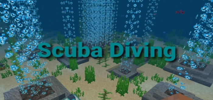 Скуба-дайвинг ( Scuba Diving ), это незамысловатая карта для Minecraft Bedrock, на которой мы выступаем в роли дайвера. Однако мы не будем ловить рыбу, а искать спрятанные сокровища, каждое из которых займет место в специальной коллекции.