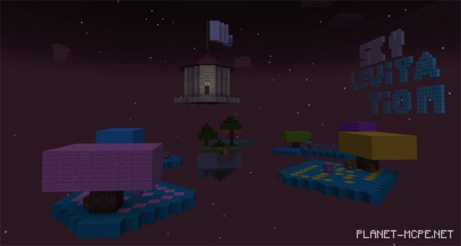 Многопользовательская карта «Sky Levitation (Левитация в небесах)» сочетает в себе очень интересные жанры игры, а именно PvP на небесных островах и левитацию в Minecraft Pocket Edition. Есть множество различных островов и на каждом из них Вы найдёте сундук с некоторым снаряжением, оружием и едой. Но это ещё не всё. Вы также сможете найти нажимную пластину, наступив на которую Вы получите временный эффект левитации. Используйте этот эффект, чтобы добраться до других островов МКПЕ, грабить предметы и в конечном счёте победить других игроков.