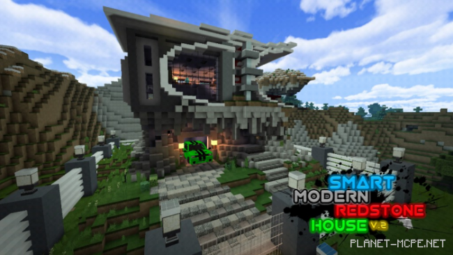 Мечтали Вы когда-либо жить в доме на скале, которы полон редстоуна и командных блоков в Minecraft? Вам больше не нужно искать чего-то подобного, потому что на карте «Smart Modern House (Умный современный дом)» полно командных блоков и творений из редстоуна, а также есть работающая машина.