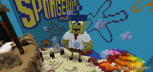 Карта «SpongeBob The Movie (Спанч-боб)» была создана чуть более двух лет назад для Xbox Edition Minecraft. Это карта для пряток, происходящая внутри мультфильма спанч-боб. Вы начнёте в кинотеатре, откуда сможете выбраться в мир Minecraft Pocket Edition, в котором присутствуют некоторые из символов спанч-боба. Этот тип мини-игр лучше всего подойдёт для многопользовательского режима МКПЕ.