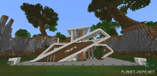 Дом представляет собой современный особняк с множеством умных украшений из редстоуна. Эти системы были созданы для того, чтобы избежать возможных злоумышленников, а также сделать его более удобным для владельца дома в Minecraft PE.