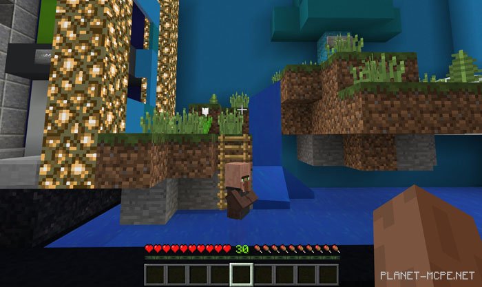 Вы управляете деревенским жителем, используя обычные клавиши ходьбы. Используя эти элементы управления Вы сможете заставить жителя перемещаться в любом направлении, подниматься по лестницам, плавать и даже прыгать. Главаня цель — пройти через все препятствия, которые встанут перед Вами в Майнкрафт Покет Эдишн. Имейте в виду, что это всего лишь бета-версия, поэтому она не включает в себя множество уровней.