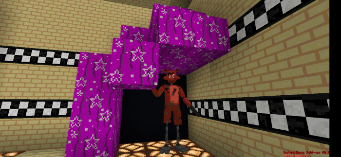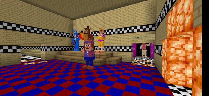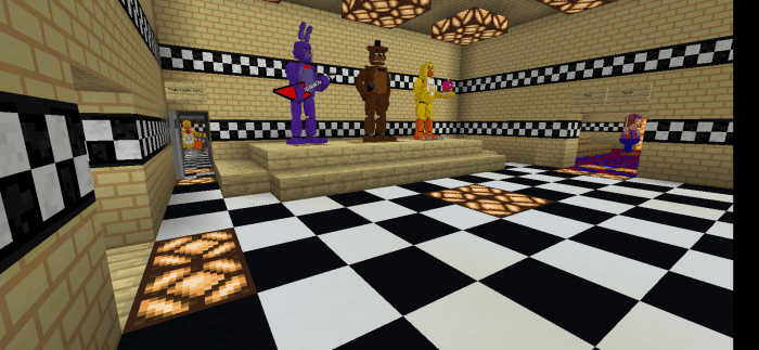 Играли ли Вы в игру «Пять ночей с Фредди» или нет — не важно, потому что на карте «The Freddy Fazbear’s Ultimate Pizzeria (Окончательная пиццерия Фреди Фазбера)» в Minecraft каждый найдет себе занятие по душе! Исследуйте локации с популярными героями и раскрывайте тайны спрятанной глубоко под землей комнаты кошмаров! Первая, основная комната. Вторая комната. Призовой уголок. Бухта Рокси. Закусочная семьи Фредди. Плюс ко всему, на карте в Майнкрафте есть секретная комната, которую Вам предстоит открыть самостоятельно.