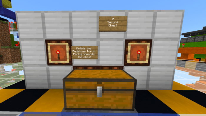 На карте «Top 10 Redstone Creation (Топ 10 творений из красного камня)» построено 10 механизмов, работающих на системах из красных камней. Они были разработаны в версии Java и адаптированы под Minecraft Bedrock. В числе структур есть огромный управляемый маяк и уникальное оружие. Управляемый маяк. Это машина, позволяющая контролировать различные эффекты маяка. С ее помощью Вы сможете менять не только эффекты, но еще и их цвета. Скрытая ловушка раздатчика. Эта действительно качественная и полезная ловушка. До тех пор, пока кто-нибудь в нее не попадется, она не будет заметна. Скрытый портал в Нижний Мир 3×3. Это единственная в Майнкрафте Бедрок машина, которая не требует блоков слизи. Скрытый лестничный вход. Он становите виден только при активации. Механизмы, открывающие и закрывающие вход, работают очень быстро. Автоматическая машина зельеварения. Позволяет создавать зелья автоматически. Также с ее помощью Вы можете сделать зелье брызгающим и увеличить его силу или продолжительность. Инвентарь и система хранения. Это своеобразный банк, в котором Вы можете хранить все свои вещи. Безопасный сундук. Он имеет скрытый кодовый замок, который найти и открыть сможет только владелец. Внутри сундука расположено мощное оружие. Кодовый цветной замок маяка. Эта машина представляет собой кодовый замок, который может заблокировать любые механизмы, связанные с красным камнем. К примеру, двери. Скрытый вход за водопадом. Это небольшой потайной вход размером 3×3. Имеет классные механизмы открытия и закрытия. Игровой автомат. Это, скорее, мини-автомат. Победа в игре не зависит от Вас, тут все решает везение.