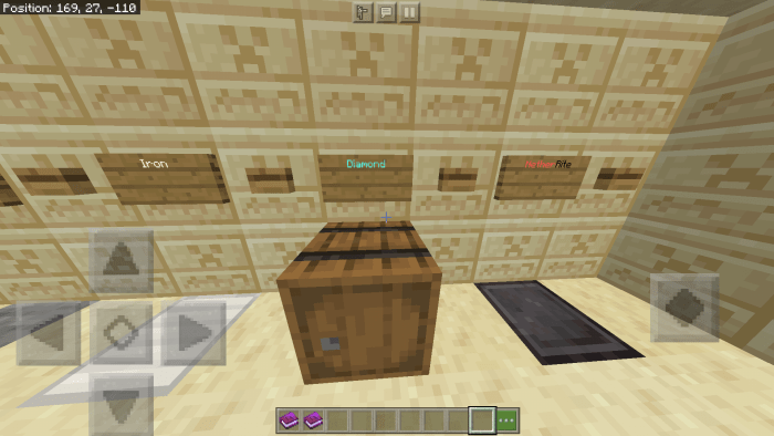 Чтобы получить броню, присядьте и нажмите на кнопку. На данный момент незеритовая броня и меч не работают.