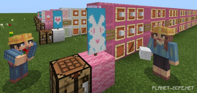 День Святого Валентина только прошёл, однако Вам не помешает украсить свой мир великолепными украшениями ко Дню Влюблённых, если Вы не успели сделать это ранее в Майнкрафт ПЕ! Карта «Valentines Banners (Баннеры ко Дню Влюблённых)» включает в себя семь действительно симпатичных баннеров, которые идеально подходят для использования в День Святого Валентина. Кролики, сердца, мороженое — вот лишь некоторые из очень милых деталей. Несмотря на то, что для поиска этих замечательных проектов в MCPE потребовалось много времени, это определенно стоило того!