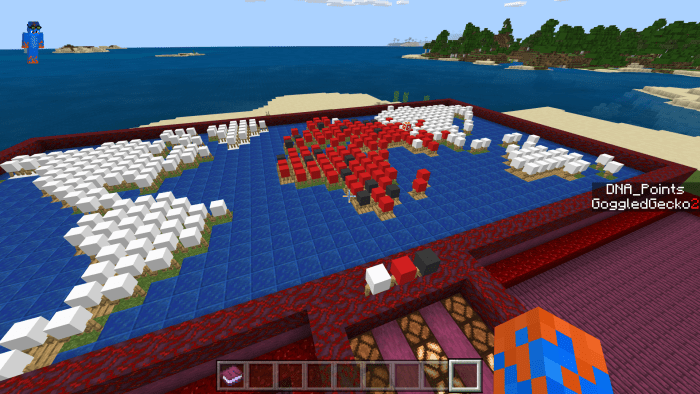 Что, если поместить игру Plague Inc. в Minecraft? Посетите карту «Working Plague Inc. (Работающий Plague Inc.)» и узнайте это! В целом она очень похожа на оригинальную версию, присутствует несколько обновлений, а также необходимость самостоятельно заражать и убивать человеческую расу. Звучит жутко! Игра была создана в ванильном Майнкрафте, и работает она на сотне командных блоках. Запустите свой вирус и наблюдайте за тем, как он завоевывает мир. Также есть обновления, которые Вы можете приобрести для своего вируса и, плюс к этому, заработать очки ДНК (это валюта).
