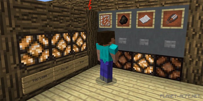 На этой карте для Майнкрафт ПЕ требуется как минимум два игрока. Это очень простая игра, основа которой базируется лишь на случайности. С этой игрой, как я полагаю, многие из Вас уже знакомы.