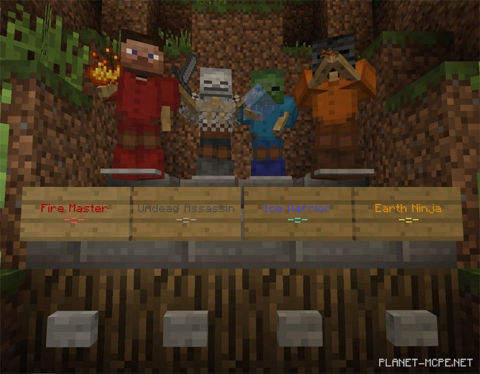 Перед тем как войти на арену Вам нужно выбрать класс. Есть четыре разных класса (Огненный мастер, бессмертный ассасин, ледяной воин и ниндзя земли), каждый из которых имеет разные способности (например, предметы и зелья с эффектами).