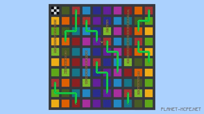 Сыграйте в классическую настольную игру в мире Minecraft Bedrock на карте «SG Snakes & Ladders (Змейки и лестницы)»! Насладитесь отличной системой кубиков и автоматизированным игровым процессом. Вы можете играть в количестве игроков до 4-х, а также в одиночку! Змеи сгибаются, а лестница являются сплошными препятствиями. Наслаждайтесь игрой змейки и лестницы в Майнкрафт Бедрок.