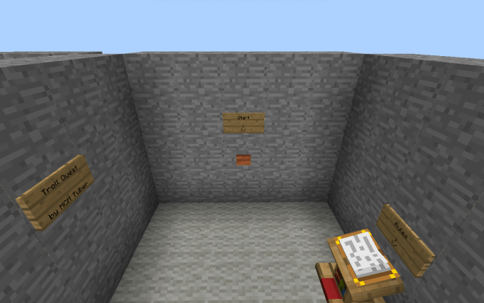 Карта «Troll Quest (Тролль квест)» заставит Вас включить интуицию и рациональное мышление! Это головоломка Minecraft, состоящая из множества ловушек. Если Вы будете невнимательны, Вы непременно в них попадете. Наблюдайте за процессом игры и делайте обдуманные шаги!