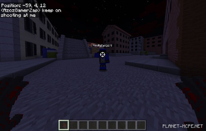Людям нужно выживать 3 минуты, чтобы выиграть, Зомби нуждаются в заражении людей до прошествии этих трёх минут в Minecraft Bedorck! Также есть коробки с боеприпасами, которые появляются на карте каждый раз, и они содержат автоматический BALROG-XI! Это оружие мощно из-за его способности к отталкиванию врагов.