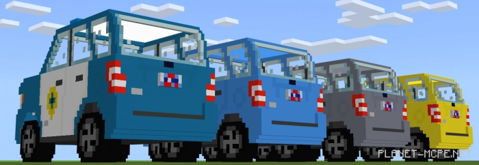 Есть четыре цвета машина: серый, желтый, синий и полицейская машина. Кроме внешнего вида у них нет никаких различий, скорость, инвентарь — все идентично. Единственное, у полицейской машины стоят мигалки.