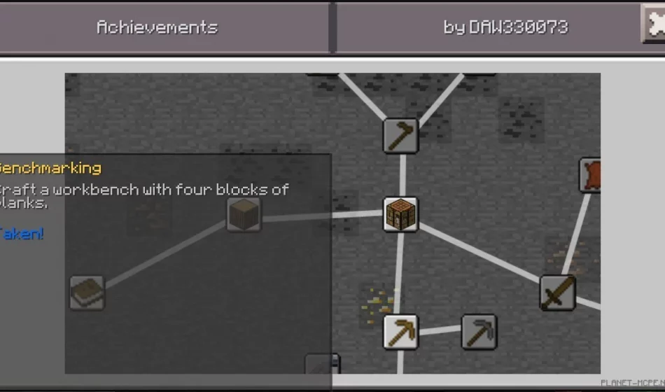 Мод Achievements — это отличная модификация, которая добавляет в Minecraft Pocket Edition различные достижение как на PC версии Minecraft, но немного с меньшим объемом количества достижений по сравнению с PC версией.