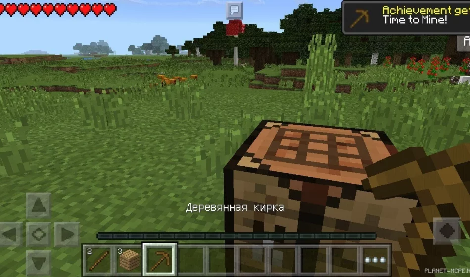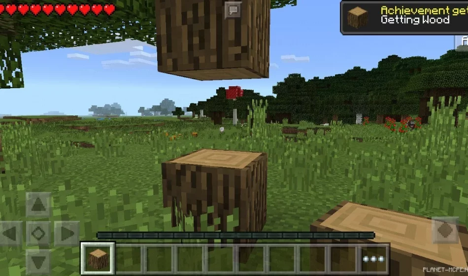 И так, когда вы зайдете в мире впервые вы получите достижение за порождение в мире. Далее следующая ачивка может быть получена за срубленное дерево, т.к. это очень важное достижение. С дерева ведь и начинаются все приключения в Minecraft Pocket Edition!