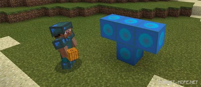 Что заспавнить Хранителя в мире Майнкрафт Покет Эдишн, Вам нужно построить особую структуру из новых железных блоков. Установите 4 новых железных блока Хранителя (замена обычным железным блокам) и в конце — тыкву сверху, чтобы заспавнить Вашего верного защитника.