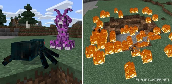 Необычный крипер по умолчанию враждебен ко всем враждебным мобам MCPE и это включает в себя таких мобов, как пещерный паук. Если он видит одного из врагов, то он быстро бежит к нему (или телепортируется) и взрывается. Он взрывается в Minecraft PE так, что взрыв получается мощнее, чем у обычного крипера, а также вызывает пожар.