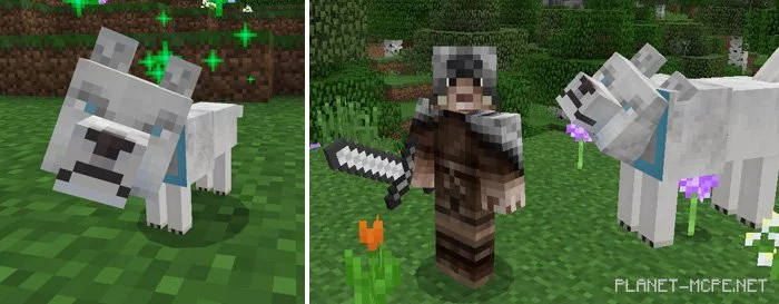 Гигантские волки (замена обычным волкам) немного больше, чем обычные волки мира Minecraft Pocket Edition. Как и мантикоры, будучи взрослыми, гигантские волки являются враждебными, поэтому Вам следует найди детёныша, чтобы приручить себе такого особого волка.